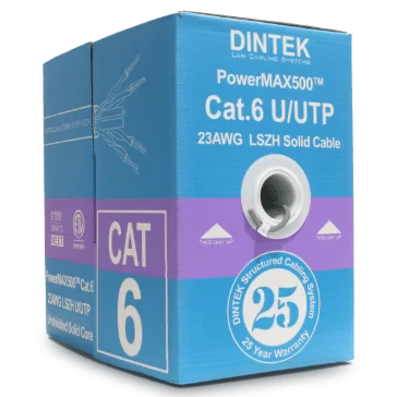 CAT6 staat voor Category 6 en ondersteunen gigabit Ethernet-segmenten tot 100 meter. Deze DINTEK PowerMAX500TM kabel is getest op meer dan 500 MHz. Ook heeft deze DINTEK kabel prestatietestresultaten laten zien die 10Gbit Ethernet-overdracht mogelijk maken tot een lengte van 70 meter. De kabel is gecertificeerd om PoE ++ en 4PPoE – IEEE 802.3bt level 3 & 4 te verwerken en wordt geleverd in doos zonder aangegoten connectoren.