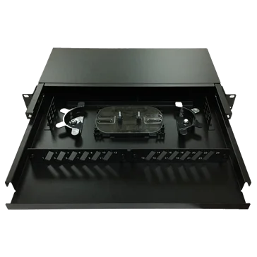 Deze hoogwaardige en kosten efficiënte uitschuifbare fiber tray is te monteren in een 19″patchkast en neemt 1U hoogte in. De tray is voorzien van frontplaten voor 2×6 SC koppelstukken.