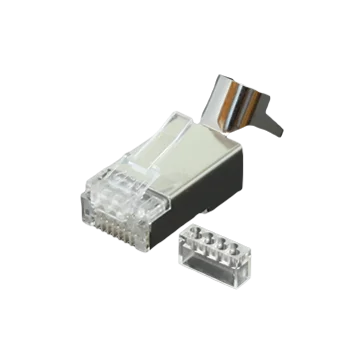 RJ45 plug voor geïsoleerde massieve koperdraden met een dikte van 23-26AWG. De plug wordt geleverd inclusief een geleider waarin de kabels op hun plaats worden gehouden als deze in de plug worden geplaatst.